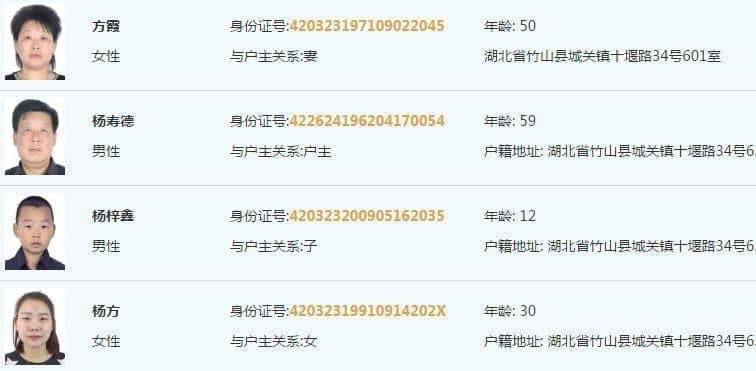 只出身份证号码,如果需要身份证详情,可以再单独开个人户籍。